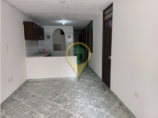 Apartamento en primer piso consta de dos habitaciones, un baño, zona de lavandería; sala comedor, cocina con mueble superior. Sericios públicos estrato 2 luz y gas natural independiente; y servicio de agua compartida.