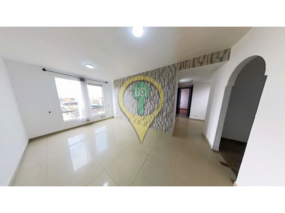 Apartamento de 56m2 con sala comedor, cocina con zona de lavandería, baño social completo, hall de alcobas, dos habitaciones auxiliares, alcoba principal con baño privado