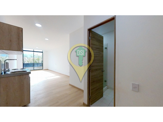 Apartamento de 32m2 con sala comedor, cocina integral con zona de lavandería, baño y habitación