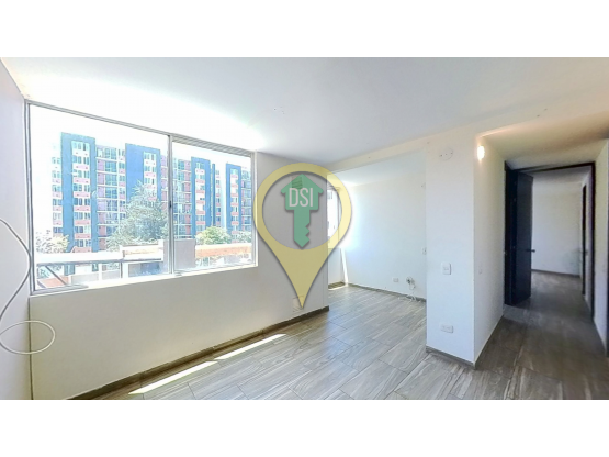 Apartamento de 48 m2 con sala comedor, cocina integral con zona de lavandería con calentador, dos habitaciones y dos baños
