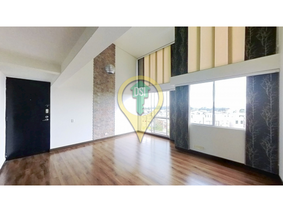 Apartamento dúplex de 116m2 en quinto piso, en el primer nivel sala comedor a doble altura, cocina integral con zona de lavandería, baño social completo, habitación auxiliar con closet, habitación con walking closet con baño privado, en el segundo nivel alcoba principal con walking closet y baño, estar y estudio abierto con vista a la sala comedor. El inmueble tiene parqueadero propio