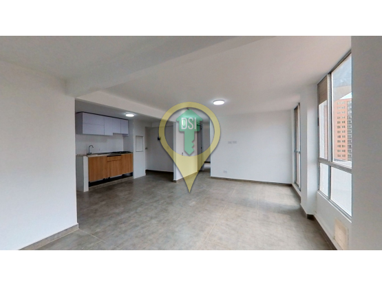 Apartamento de 47m2 en el quinto piso consta de sala comedor con balcón, cocina integral con zona de lavandería, estudio hall de habitaciones, dos habitaciones, un baño