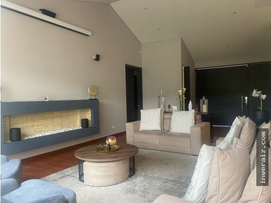 Sala amplia con chimenea, baño social, comedor independiente, cocina abierta con mesón auxiliar, cuarto de ropas amplio y cuarto de servicio.