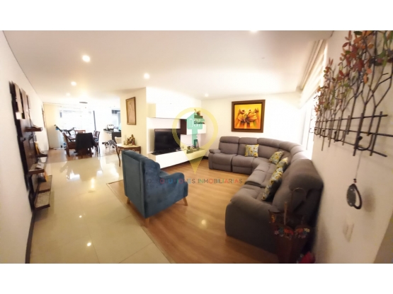 Primer Nivel: Sala, baño social, comedor, cocina abierta con barra, zona de lavandería, terraza Segundo Nivel: Sala de estar, Deposito, estudio, Habitación auxiliar con baño privado más balcón, habitación auxiliar con baño privado. Tercer Nivel: habitación principal con baño privado, terraza con Bbq. Sótano: dos parqueaderos.